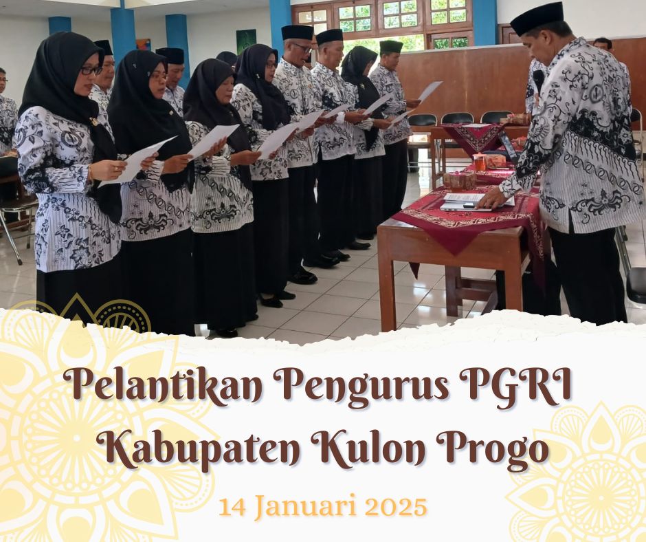 Pada tanggal 14 Januari 2025, telah dilaksanakan acara pelantikan formasi pelengkap kepengurusan PGRI Kabupaten Kulon Progo. Acara ini berlangsung di Gedung Guru Pengasih dan dipimpin langsung oleh Ketua PGRI Kabupaten Kulon Progo.